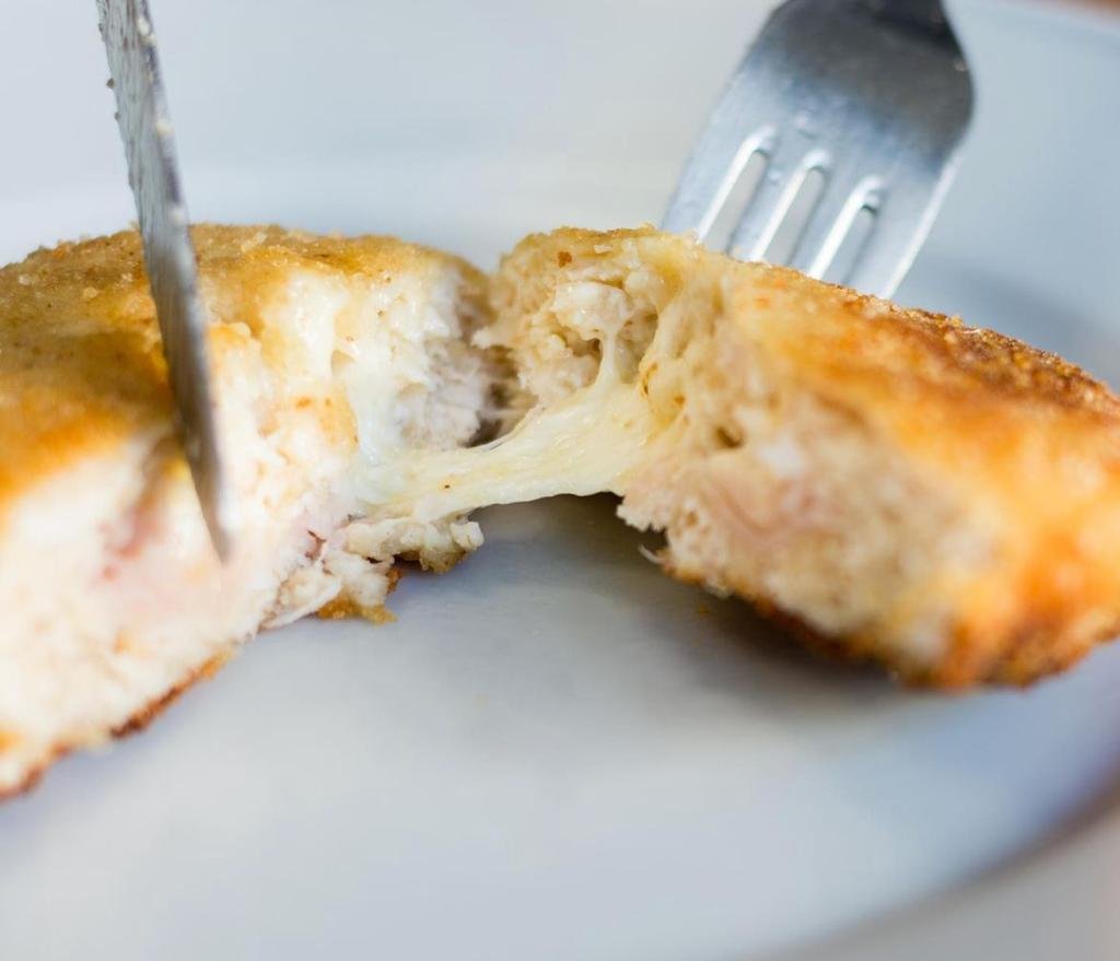 Medallones de pollo rellenos con jamón y queso muzarella rebozados en pan…